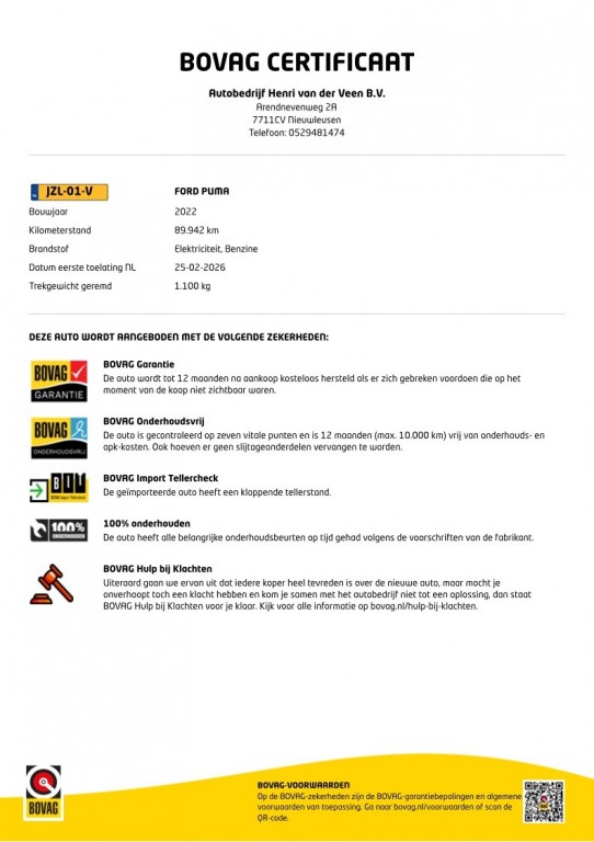 Prijs is incl. afleveringsbeurt en 12 maanden Bovag garantie.